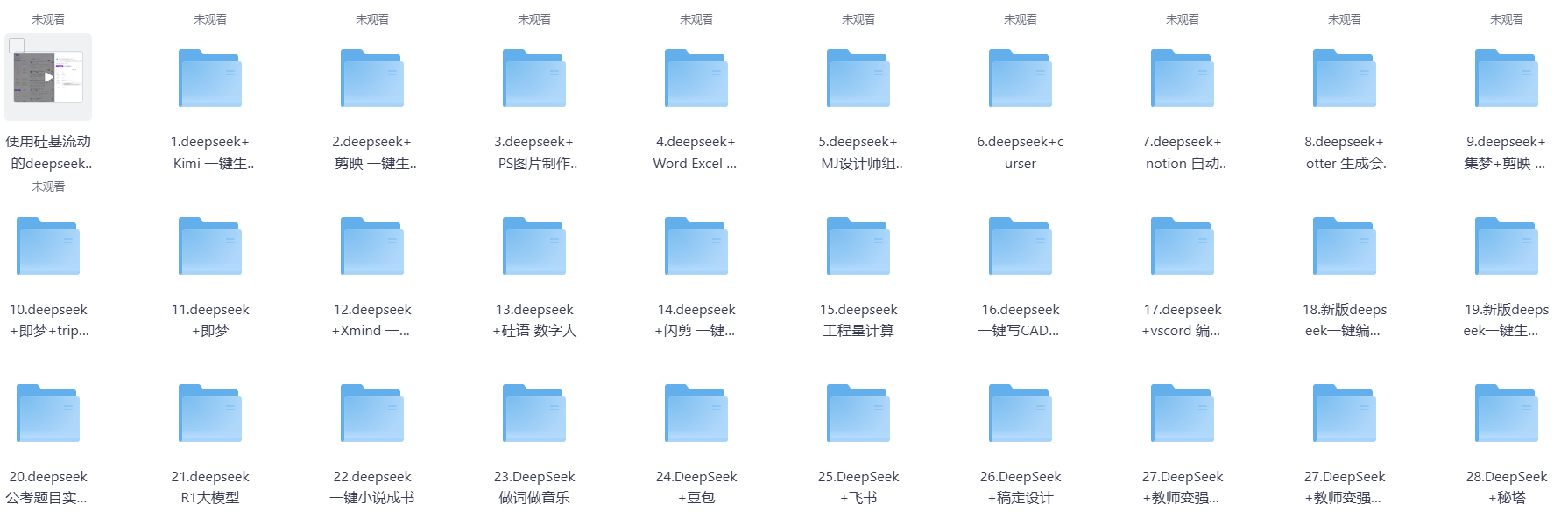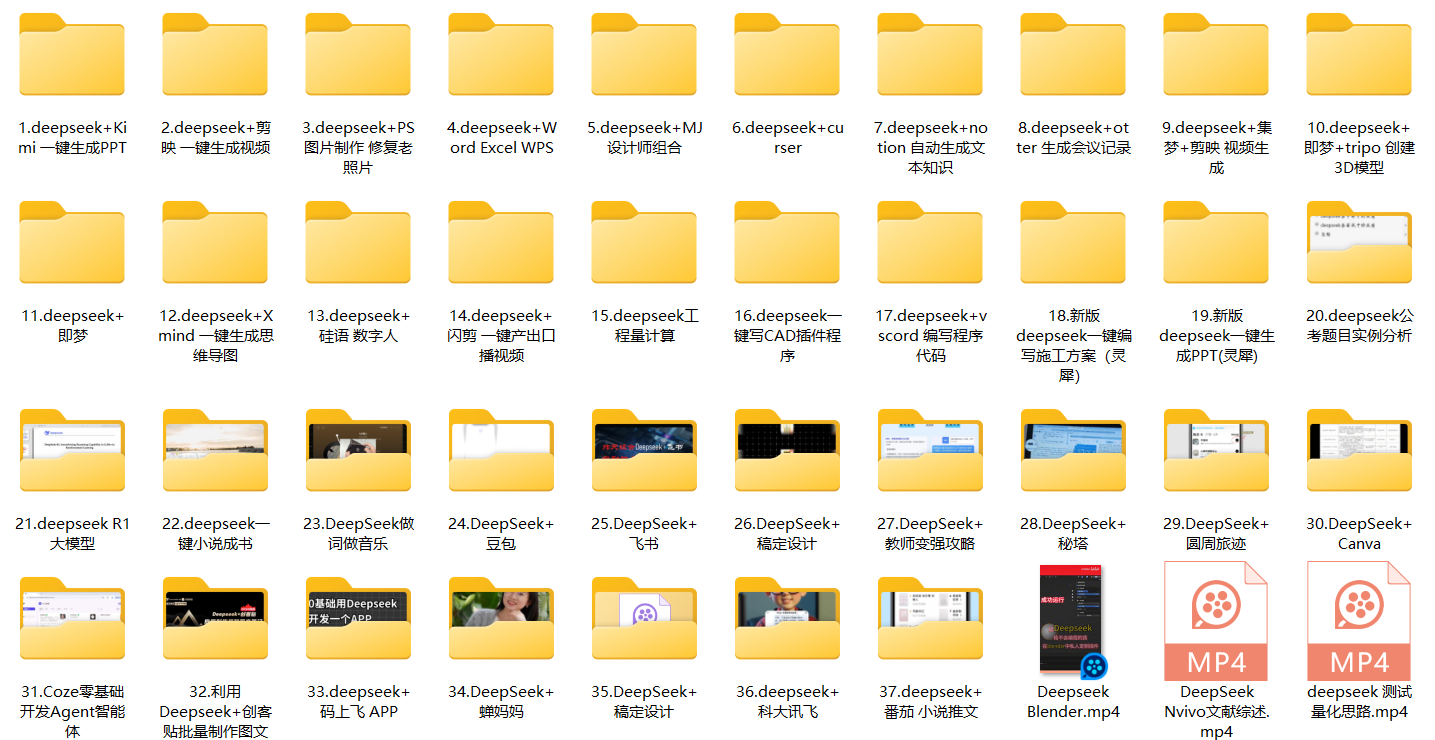相较于单一的应用教程,这份合集更注重场景化组合搭配,比如“Deepseek+办公软件高效协作”“Deepseek+短视频创作全流程”“Deepseek+跨境电商运营辅助”等,帮你打通AI应用的全链路。每一个应用组合都经过实操打磨,规避了常见坑点,确保实用性与可落地性。购买即享终身更新服务,后续新增的优质应用组合将免费同步,持续为你的AI使用赋能。